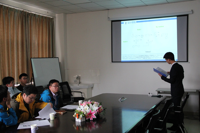 为进一步掌握2017年大学生创新创业训练计划项目进展情况,加强项目过程管理,化学院组织各项目团队于4月10日在四方校区一号实验楼302会议室进行中期答辩。评审专家组由李东祥、温永红、刘佳、信连涛组成,共有10支国家级队伍和9支校级队伍参加答辩。