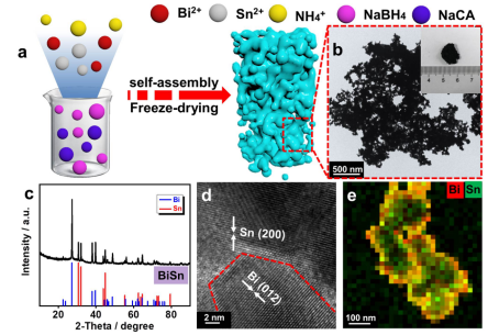 相关成果发表在国际知名期刊Angewandte Chemie International Edition,论文信息:Engineering Bi-Sn Interface in Bimetallic Aerogel with 3D Porous Structure for Highly Selective Electrocatalytic CO2 Reduction to HCOOH Angewandte Chemie International Edition 2021, DOI: 10.1002/anie.202102832.