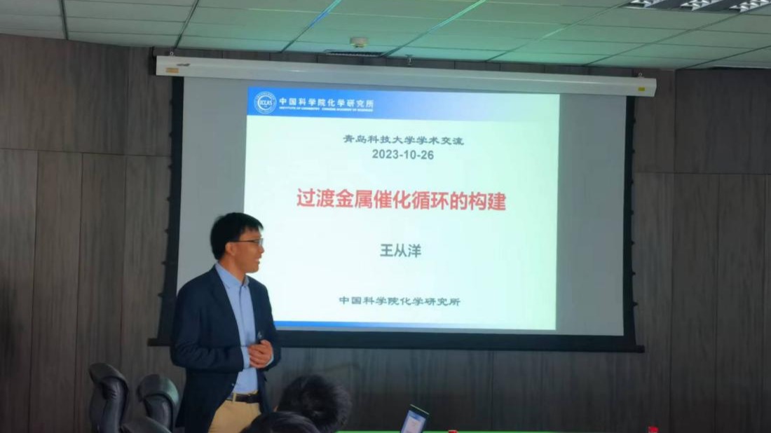 2023年10月26日上午9时,中国科学院化学研究所研究员、国家自然科学基金优秀青年学基金、杰出青年基金获得者、中国化学会“中国青年化学家锰元素代言人”王从洋老师应邀在化学院CCE1505作了题为《过渡金属催化循环的构建》的学术报告。报告会由我院有机化学教研室杨道山教授主持,化学院、化工学院等三十余名老师、研究生、本科生同学参加了此次学术交流会议。