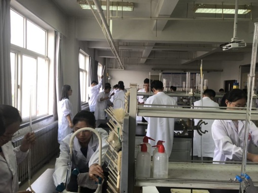 9月24日下午,罗细亮院长、高洪涛副院长来到基础化学实验中心检查指导新学期实验教学工作,详细询问了中心教学准备及实验课安排方面的工作,在听取罗世忠主任的汇报后对中心工作给予高度肯定。之后在罗主任及王春芙老师的陪同下,两位院长走进实验室,查看学生做实验情况及教师上课情况。实验室秩序井然,老师们对一年级大学生进行详细的讲解及指导,学生们认真听讲并仔细进行实验操作,为新学期第一课开了一个好头!
