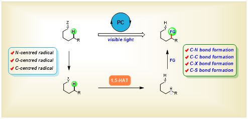 C(sp3)-H键广泛存在于天然产物和药物分子中,如何利用C(sp3)-H键官能化反应直接高效、经济地构建目标分子,一直是有机化学领域的研究热点。而1,5-氢迁移(HAT)策略可以高效、高选择性地实现对远端惰性C(sp3)-H键的官能化。