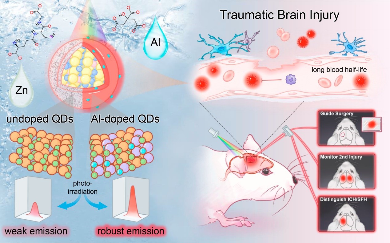 论文题目:Aqueous Grown Quantum Dots with Robust Near-Infrared Fluorescence for Integrated Traumatic Brain Injury Diagnosis and Surgical Monitoring