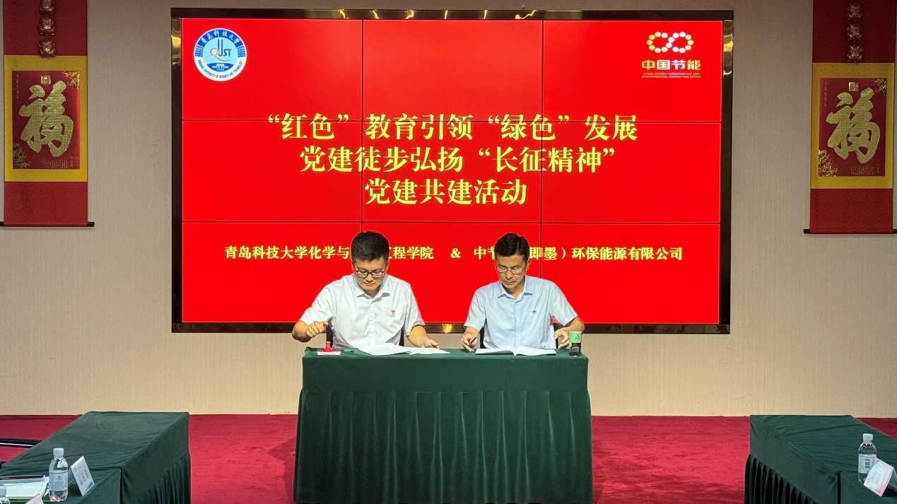 随后,“红色”教育引领“绿色”发展党建徒步弘扬“长征精神”活动暨党建共建签约仪式正式开启。中节能(即墨)环保能源有限公司党支部书记、副总经理石闯,学院党委书记肖强、党委组织委员张同雷、教授邢军、詹天荣、庞秀江、支部书记程丽等硕博师生党员及学生代表,中节能公司相关部门负责人出席签约仪式。