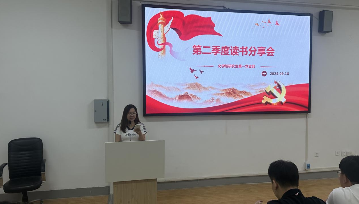 为高度贯彻落实习近平新时代中国特色社会主义思想,进一步建设“红色分子”支部特色,加强建设“学习型、志愿型、先锋型”党支部,化学院研究生第一党支部于9月18日举办2024年第二季度微阅读分享会。引导支部党员以读书提升修养,以读书促进履职,培养阅读习惯,营造党内学习氛围,响应建设书香校园的号召。党支部书记程丽及全体党员参加会议。