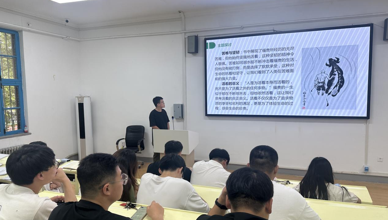 蔡倩倩则通过阅读世界经典名著《小妇人》,讲述了马奇家四姐妹在成长道路上所经历的欢笑与泪水,以及她们如何在家庭、爱情与梦想之间寻找平衡的故事。她表示,《小妇人》教会了她勇敢、坚韧与自我牺牲,这些品质对于一名党员而言同样重要,激励她在科研道路上也要保持初心,勇于担当。党员杜中磊带着对生命的敬畏与思考,分享了余华作品《活着》的深刻感受。他通过福贵一生的坎坷经历,探讨了生命的意义与价值。杜中磊强调,在和平年代的我们更应珍惜眼前人,感恩生活,同时不忘历史的苦难,以此激励自己更加努力地学习和工作,为实现中华民族的伟大复兴贡献力量。