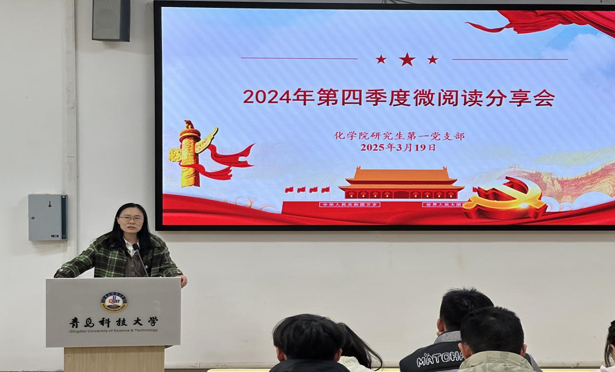 2025年3月19日,化学院研究生第一党支部成功举办了第四季度“微阅读”分享会。活动旨在通过分享阅读心得,引导党员深入学习党的理论知识,坚定理想信念,提升党性修养。光电分析教育部重点实验室执行主任丁彩凤教授出席会议,党支部书记程丽主持。