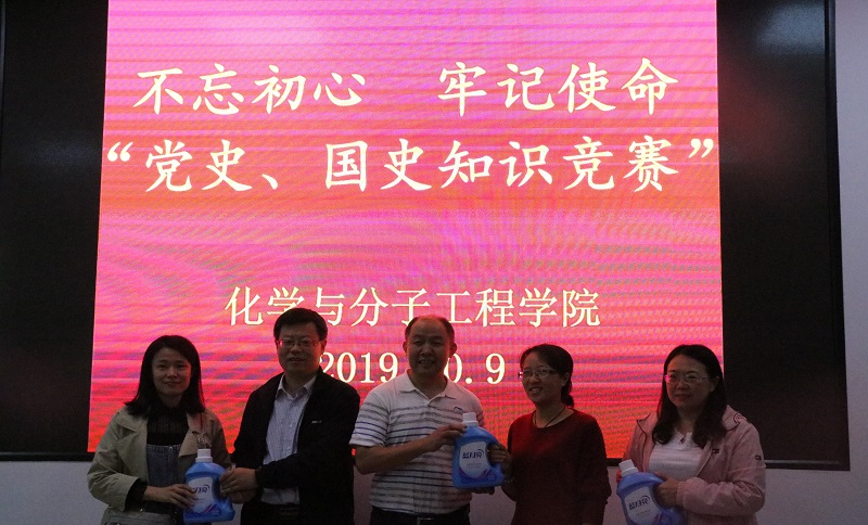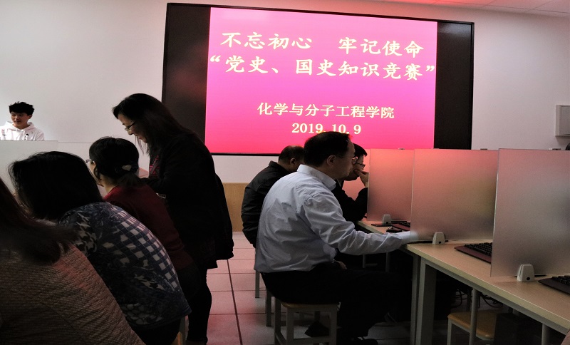 10月9日,化学院党总支在虚拟仿真中心举办 “不忘初心 牢记使命”党史、国史知识竞赛活动,化学院全体党员教师参加了比赛。