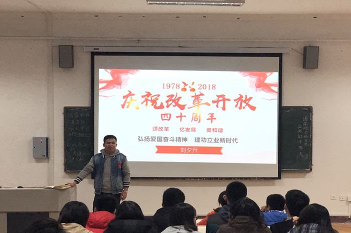 学院yl23455永利集团优秀共产党员、研究生第三党支部书记刘夕升作为党课主讲人,通过回顾中国改革开放四十年的基本历程,分析改革开放四十年来我国的主要矛盾与成就,对中国改革开放的四十年的经验与启示进行总结,最后针对学校“五有”理念为党员和入党积极分子进行详细的阐述。