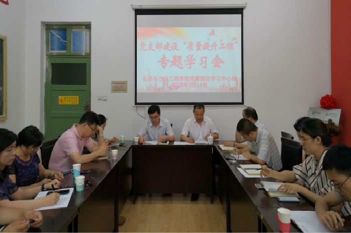 7月14日下午,化学院党委在一政楼223召开支部建设“质量提升工程”专题学习会,学院党委成员、各师生党支部书记参加会议。会议由学院副处级组织员张同雷主持。