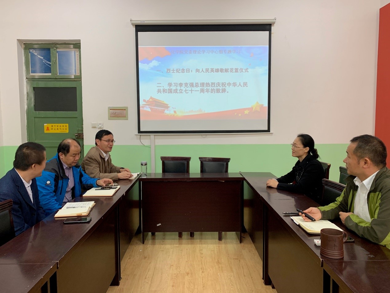 10月5日上午,化学院党委理论中心组在学院党建活动室223开展理论中心组集中学习。学院理论中心组成员参加会议,学习由学院党委书记王德宝主持。