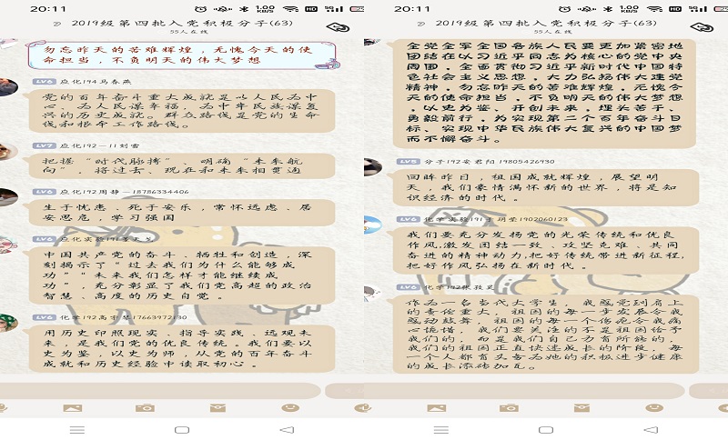 在随后的交流中,学生党员刘德洋、郑德波等结合自身学习工作实际,围绕学习贯彻党的十九届六中全会精神作了现场交流发言。刘德洋说:“作为一名学生党员,我们要不断学习,勇毅前行,还要勿忘昨天的苦难辉煌,无愧今天的使命担当,不负明天的伟大梦想,做一名有志气、有骨气、有底气的新时代中国青年。”郑德波谈到:“作为新时代中国青年,我们要自觉接受党的教育、管理和监督,严以律己,勤奋务实,立足本职,扎实工作,积极为同学办实事,从党的光辉历史中汲取前进的力量,不断提高自己的学习能力和水平,用青春与奋斗交出一份优异的答卷!”会后,2019级入党积极分子围绕学习宣传贯彻党的十九届六中全会精神,结合自己感悟纷纷在线上留言。