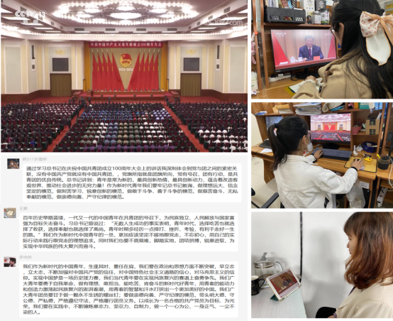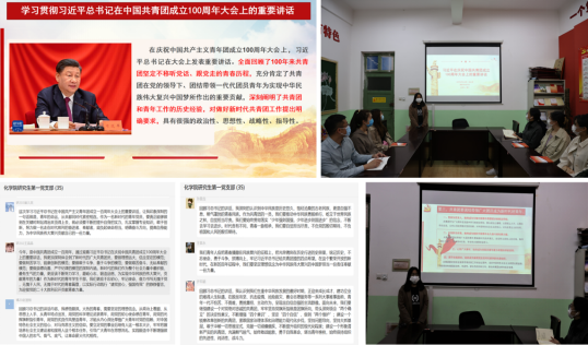 庆祝中国共青团成立100周年大会于5月10日隆重举行,习近平总书记出席庆祝大会并发表重要讲话。总书记的重要讲话寄托了对青年工作者关怀备至的大爱真情。化学院研究生各党支部于5月11日至12日深入学习重要讲话精神,沿着总书记指引的航向,践行党团先锋引领,坚定不移听党话,跟党走。