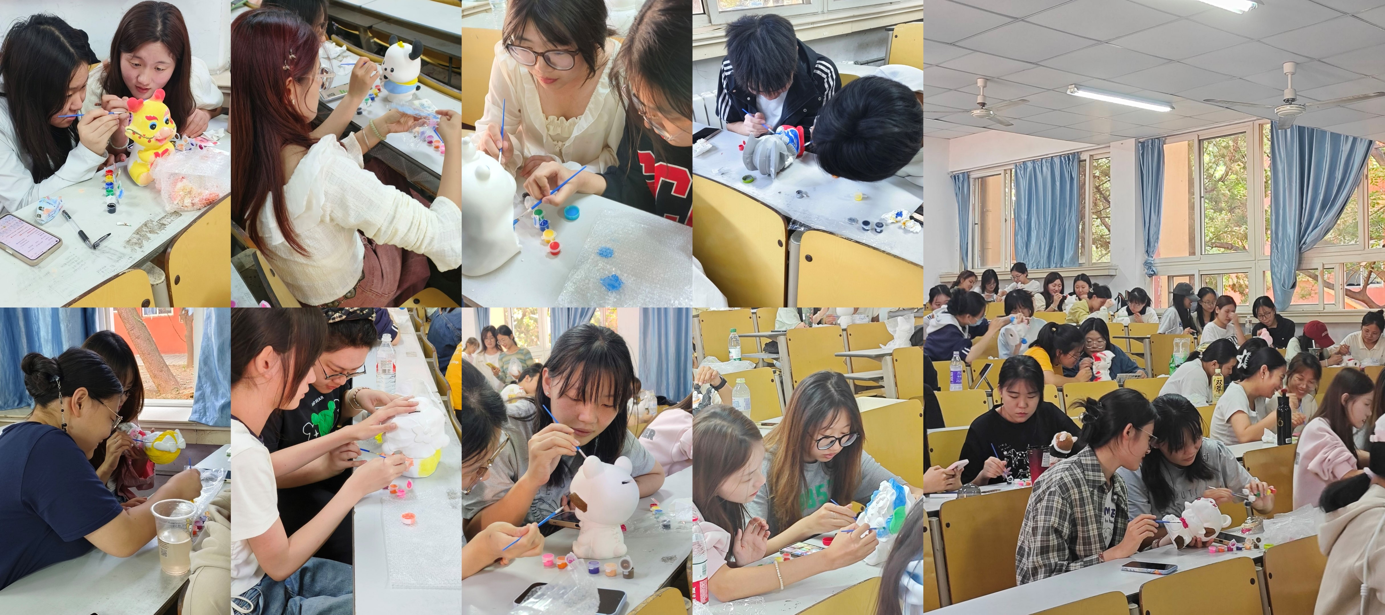 活动中,同学们和自己的好友共同挑选自己本组的石膏娃娃并领取绘画工具进行涂鸦。调色、勾勒、上色……每一步都充满了创意与乐趣。涂鸦时,大家充分发挥想象力和创造力,根据自己的心情及理解进行绘制。在轻松愉快的氛围中,学生们不仅展现了自己的艺术才华,更在合作中加深了彼此的了解与信任。不少学生表示,通过此次活动,他们发现了身边同学的另一面,也感受到了团队合作的力量。