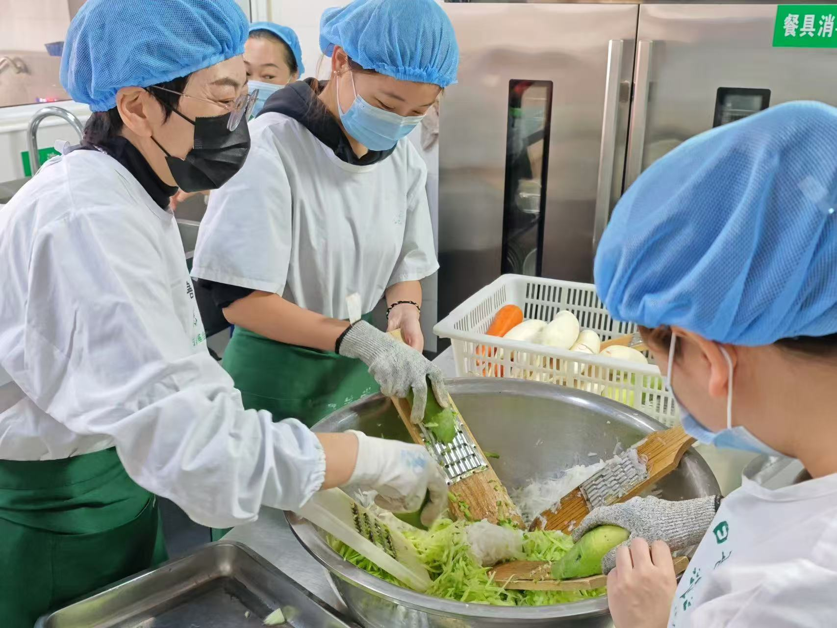 日善堂是一家主要服务于空巢、孤寡、残障等老年及社会弱势群体的非盈利的公益餐厅,践行“成为保护社会脆弱群体的奉献者,共同塑造爱与被爱的美好世界”的使命。首先,在日善堂值班店长的带领之下,志愿者们深入了解日善堂的建设初心和运营模式。随后,志愿者们协助值班服务团队开展清理卫生、摆放餐具、洗菜备菜等准备工作,共同为老人准备营养美味的午餐。