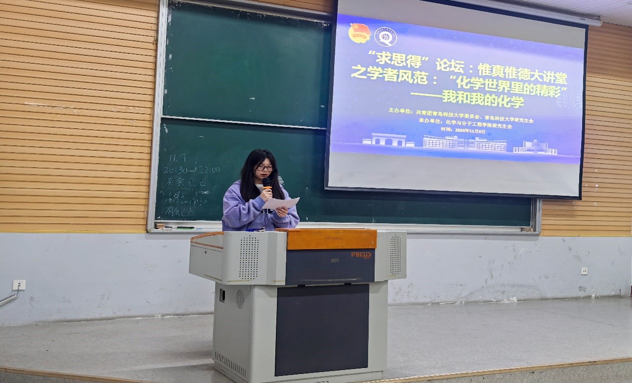 2024年11月9日下午4点化学院研究生会于四方校区第二教学楼101室开展“求思得”论坛:惟真惟德大讲堂之学者风范“化学世界里的精彩”专题讲座。yl23455永利集团博士生导师,山东省“泰山学者”青年专家吕健教授应邀出席。报告会由刘云主持,化学院本科生与研究生同学积极参与本次报告会。