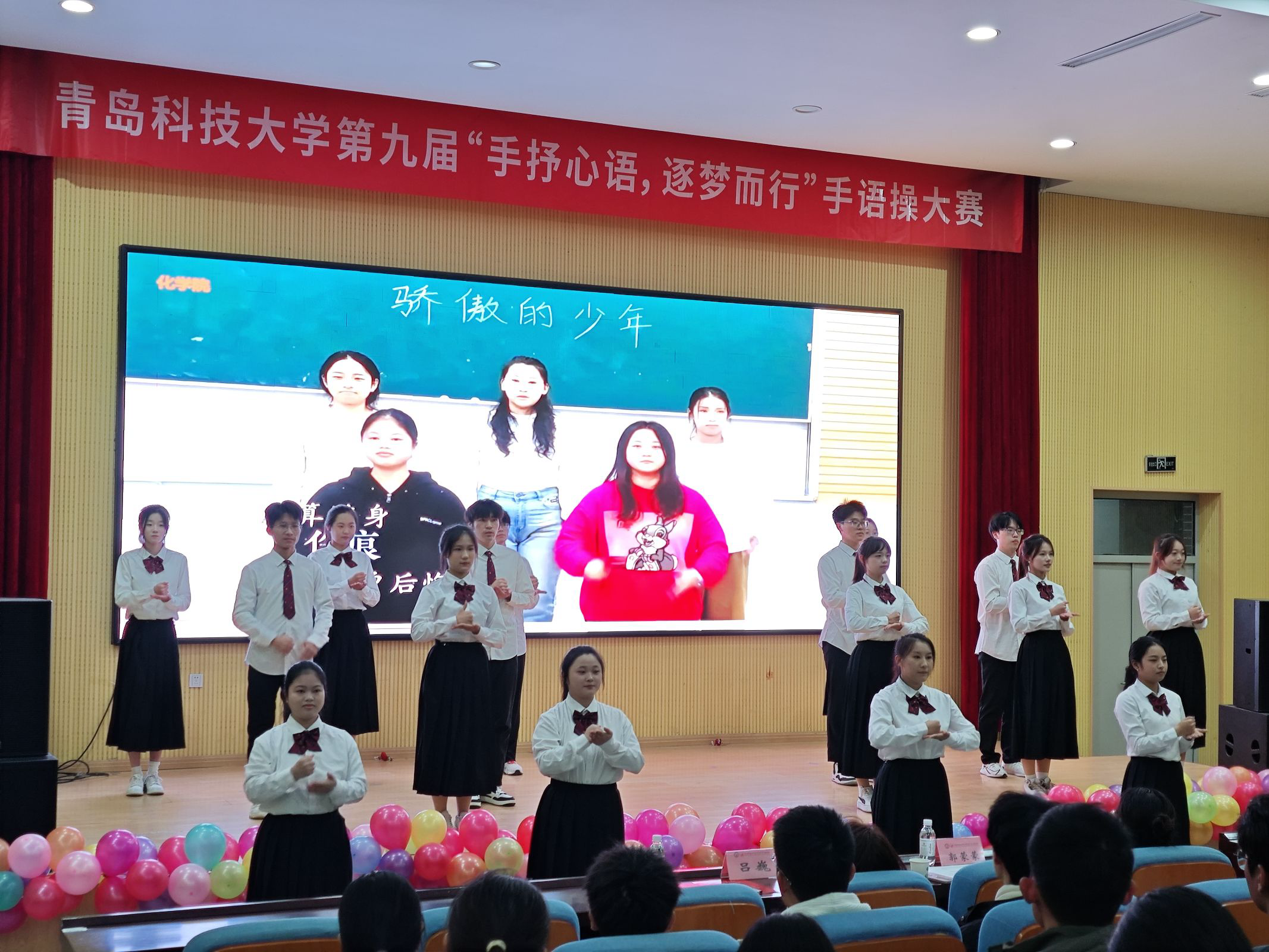 歌曲《骄傲的少年》蕴含着一种不屈不挠、勇往直前的精神力量,化学院代表队的同学们将这种精神用手语的形式传递给了每一位观众。他们以整齐划一的动作和饱满的热情,将歌曲的意境完美地展现了出来。他们的每一个手势都充满了力量与情感,每一个动作都彰显了青春的活力与精彩,也表达了年轻人的自信、自强与勇敢,深深吸引了评委老师及观众的目光,赢得了阵阵热烈的掌声。