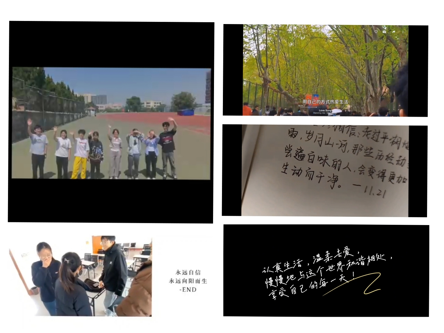 在“园艺贴画”部分中,同学们运用落叶和树枝等大自然的素材创作贴画,表达在秋冬的季节里自己生活的多姿多彩,抒发同学们对秋冬季节的丰富的感情,同时也增强了学生们的创新性与行动力。在“校园心生活”部分中,同学们通过拍摄视频,书写图文、音频等方式,记录自己在新校园的适应过程以及大学生活中幸福小事,捕捉同学们的成长感悟与面对新生活新挑战的勇气,使同学们充分体会到了大学生活的美好与活力,激发更多新生积极拥抱大学生活,珍惜每一个瞬间。