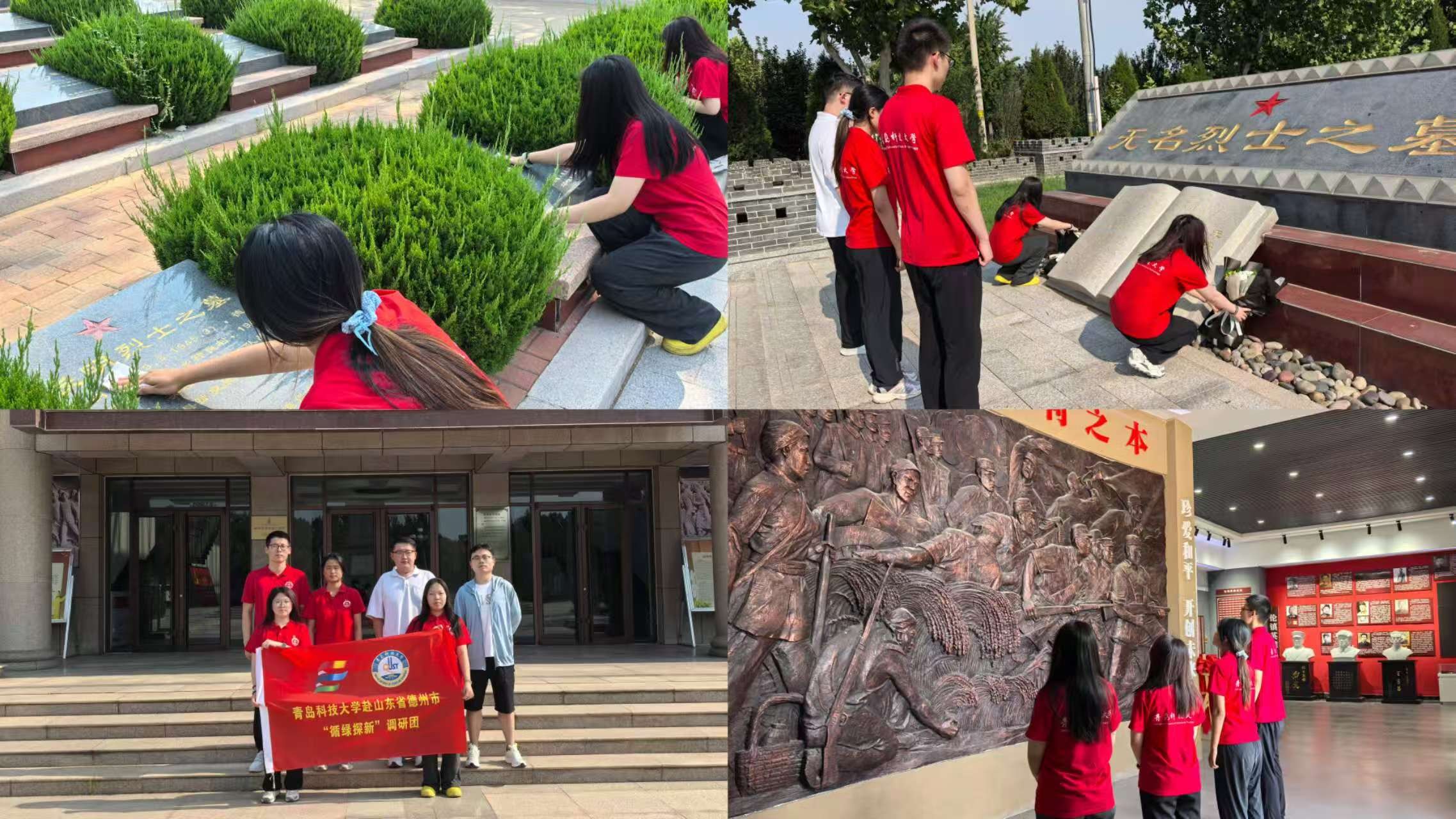 团队成员在德州市革命烈士陵园庄重献花、俯身擦拭烈士墓碑,在肃穆氛围中追思为民族独立与人民解放捐躯的革命英烈,深切感悟根植于中华儿女血脉中的爱国主义精神。团队成员走进齐禹抗战纪念馆,通过沉浸参观历史展陈,学习冀鲁边区军民在中国共产党领导下,同仇敌忾、共御外敌的艰苦卓绝斗争史,深刻体悟伟大的抗战精神。