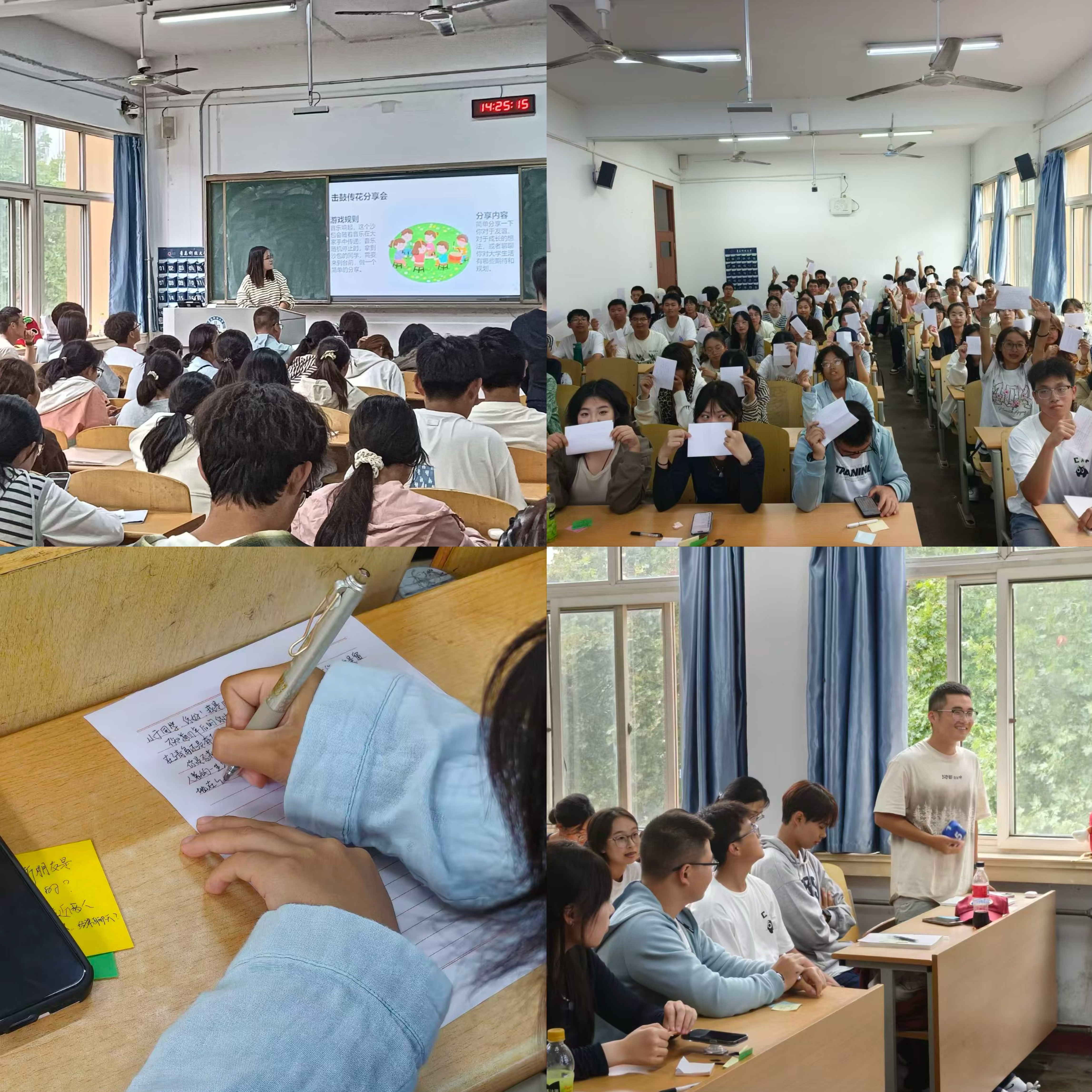 互动实践活动通过“盲盒解忧”“心声传递”“时光胶囊”三大环节深化体验式学习:“盲盒解忧”中,学生匿名提交困惑后随机领取并以朋辈身份提建议;“心声传递”以击鼓传花形式,让学生分享对理想友谊的理解或大学生活规划;“时光胶囊”环节则由学生写下四年后成长期许,交由学院封存待毕业季启封。活动以“理论+实践”让学生感受朋辈支持力量,为校园文化建设提供思路。