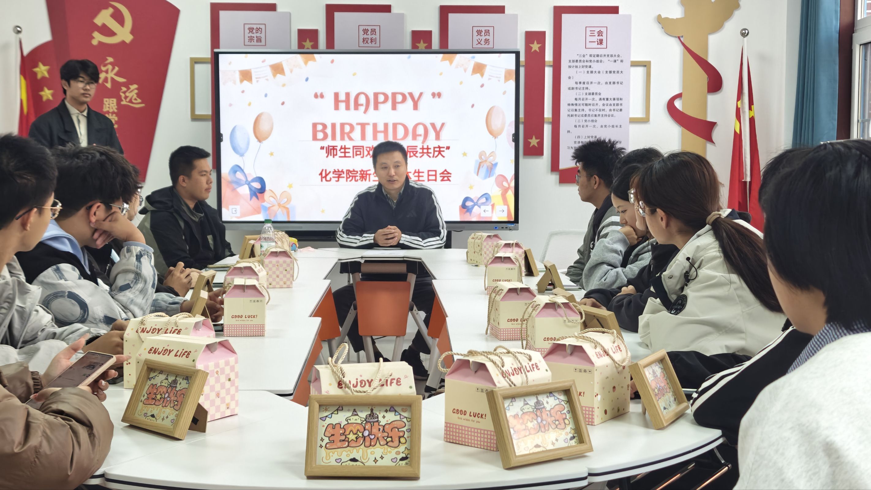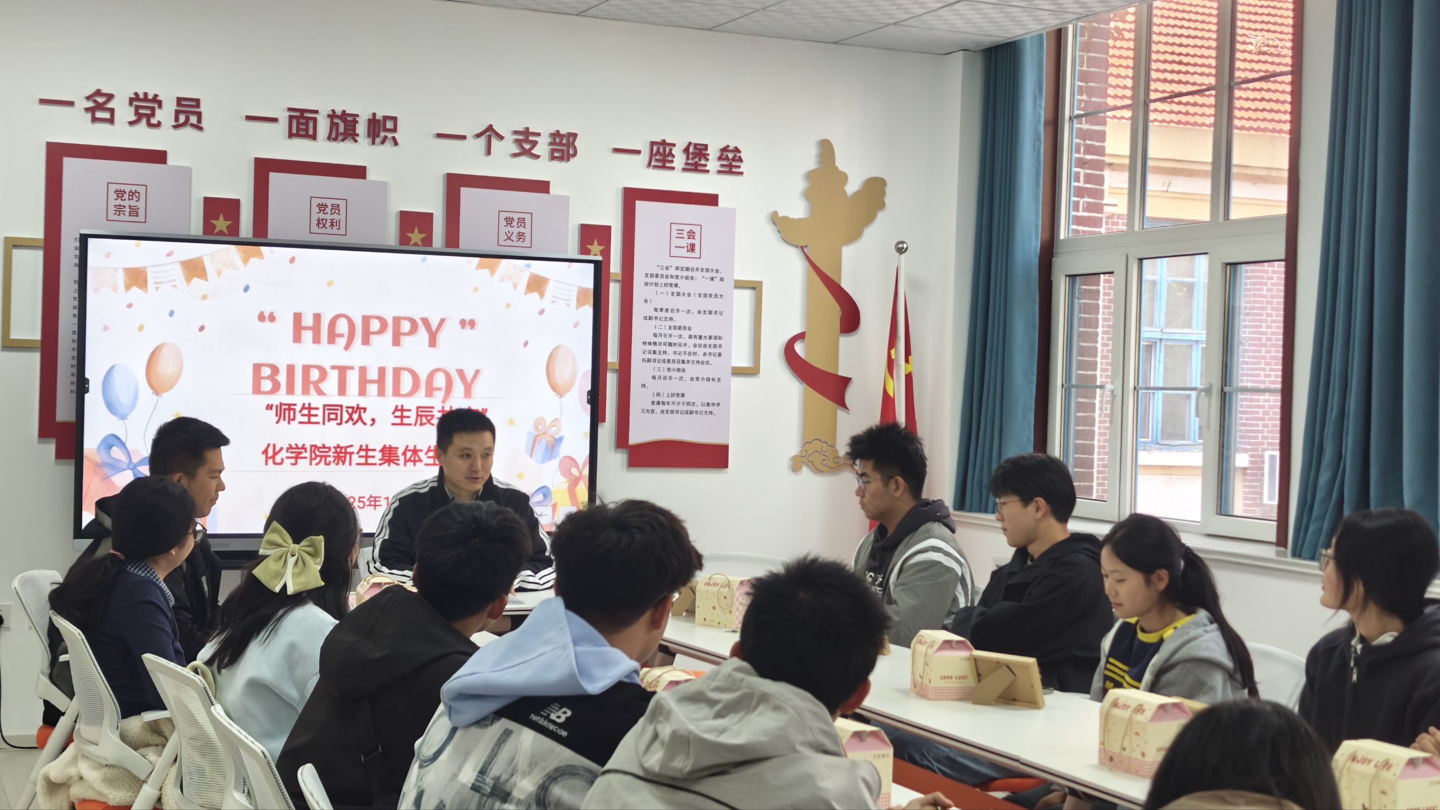 金秋送爽,温情流淌。为增进师生间的情感交流,让初入校园的2025级新生感受到学院的关怀与温暖,化学院于2025年10月21日下午在一政党建活动室开展“师生同欢,生辰共庆”集体生日会活动。此次活动不仅为新生们送上了大学阶段的第一份集体生日记忆,更为师生搭建了一个轻松愉快的交流平台。
