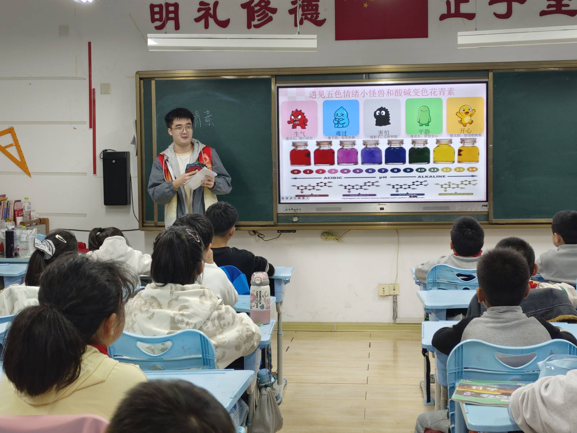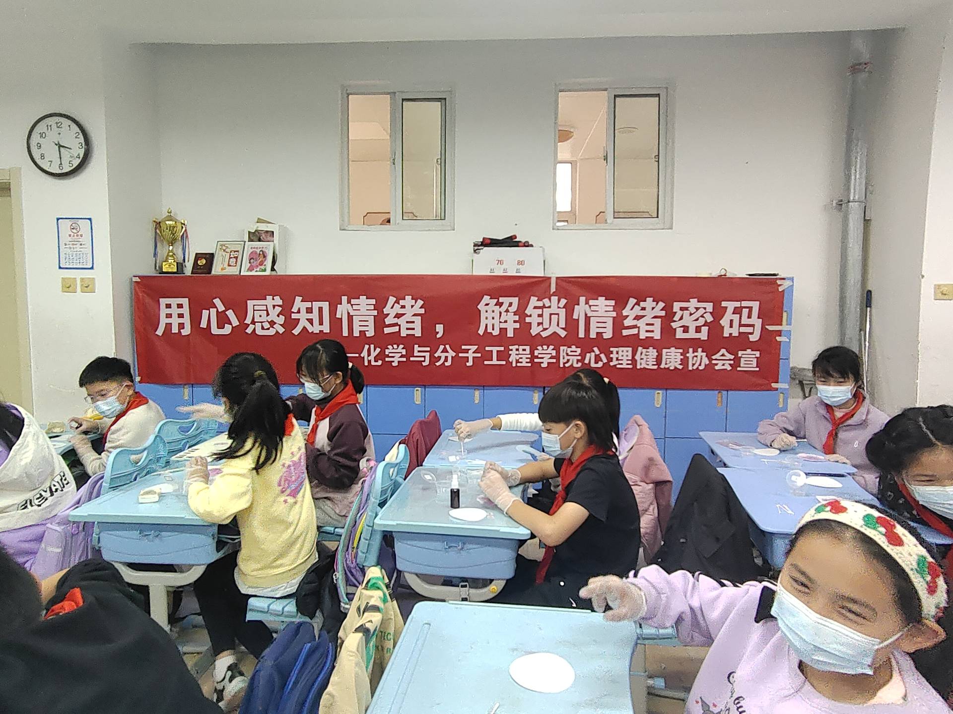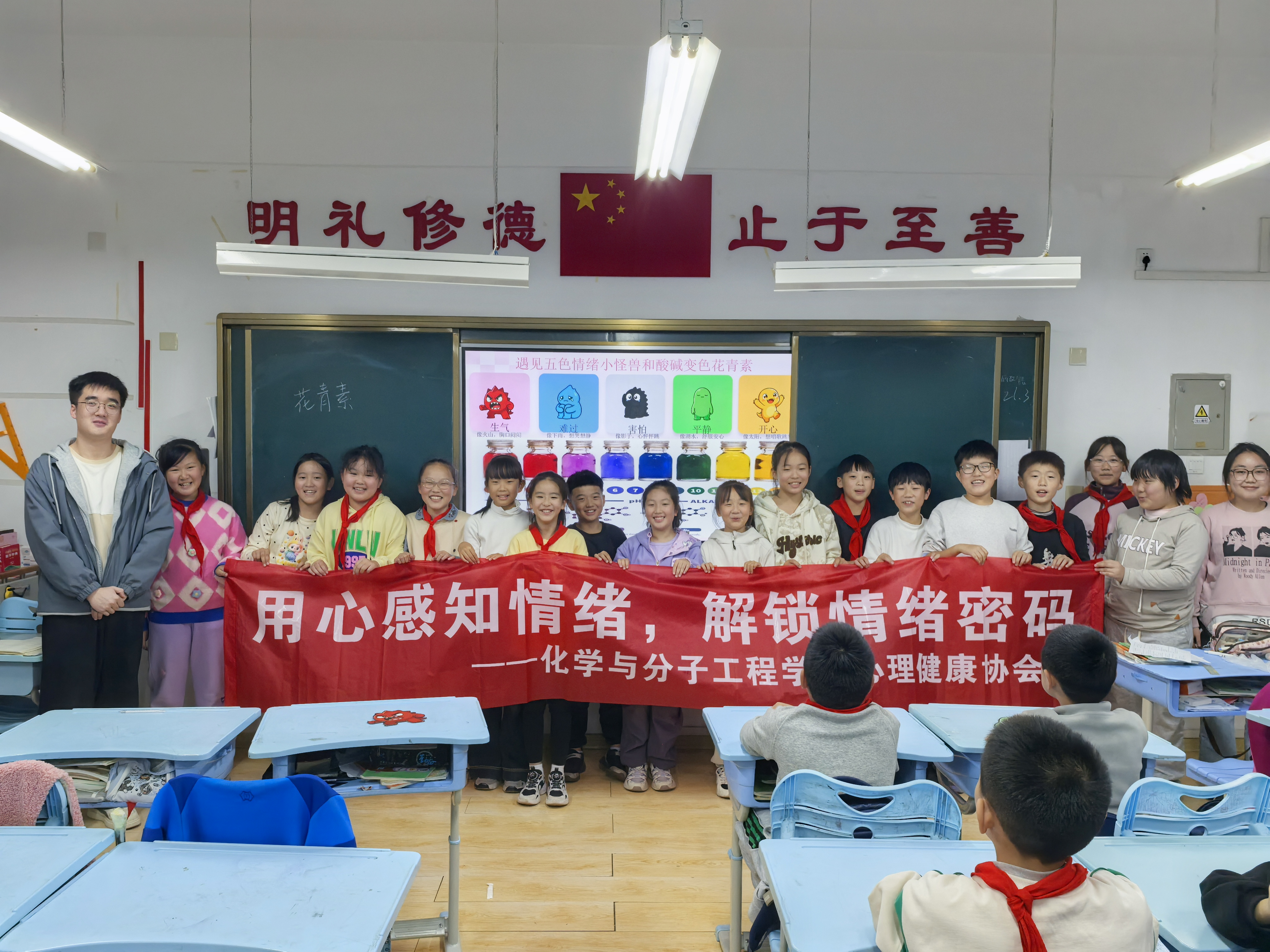 10月29日,永利y23455心理健康协会、学院研究生党支部与小分子志愿服务队联合市北区洛阳路街道康居社区党委,共同前往青岛明德小学,联合开展一场集化学科普与心理辅导于一体的特色志愿服务活动。