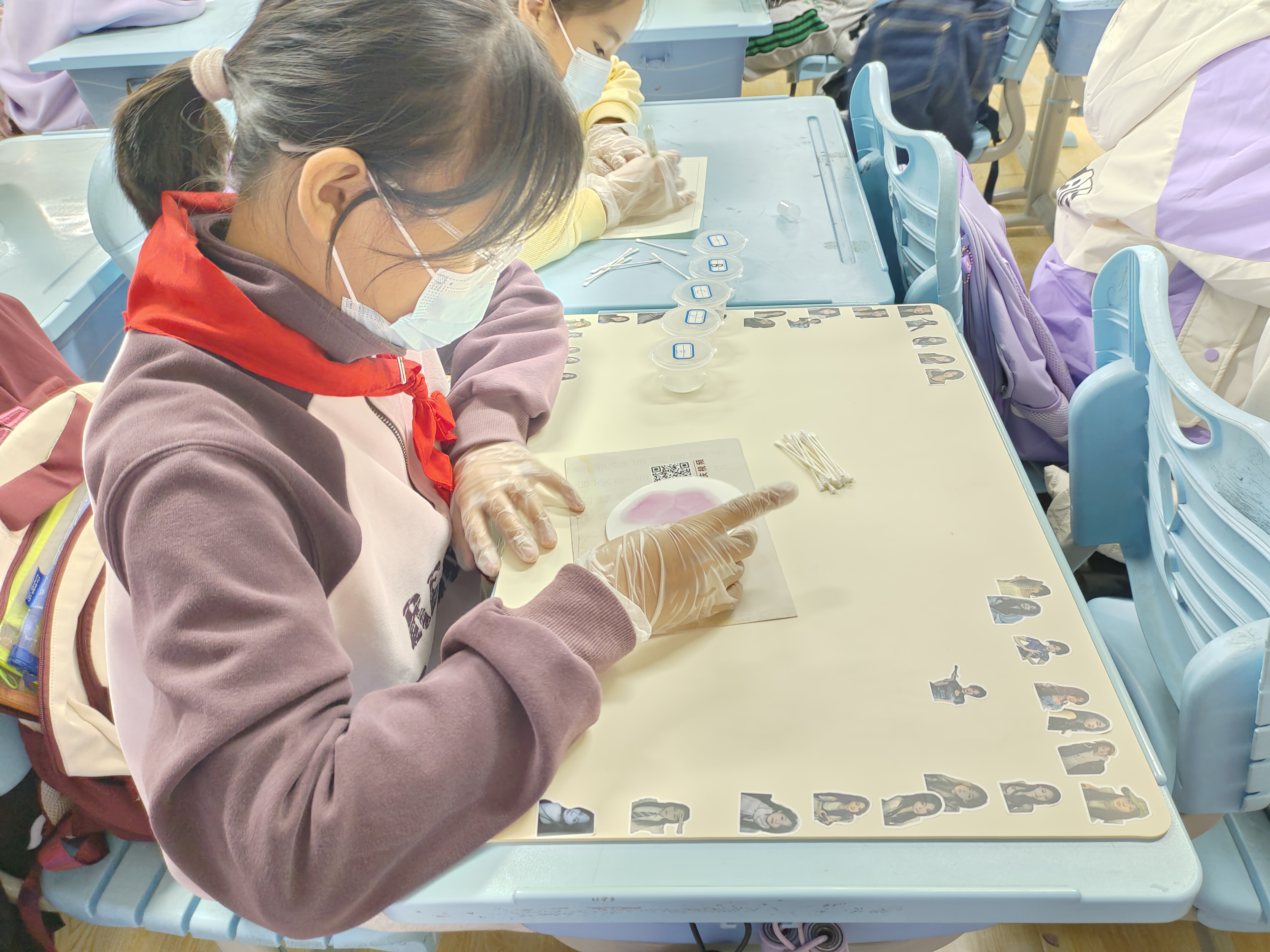 课程伊始,志愿者化身“科学魔法师”,以“情绪是身体里的信号灯”为引,通过生动讲解花青素的特性及其在酸碱性环境中的显色原理,帮助同学们构建初步的理论认知。在动手实践环节,学生们认真操作、细心观察——当玫瑰花提取液随着pH值的改变而呈现出规律性的色彩变化时,现场响起阵阵感叹,“原来情绪和颜色一样会变化,每种都有存在的意义!”学生小李的感慨道出大家的心声。