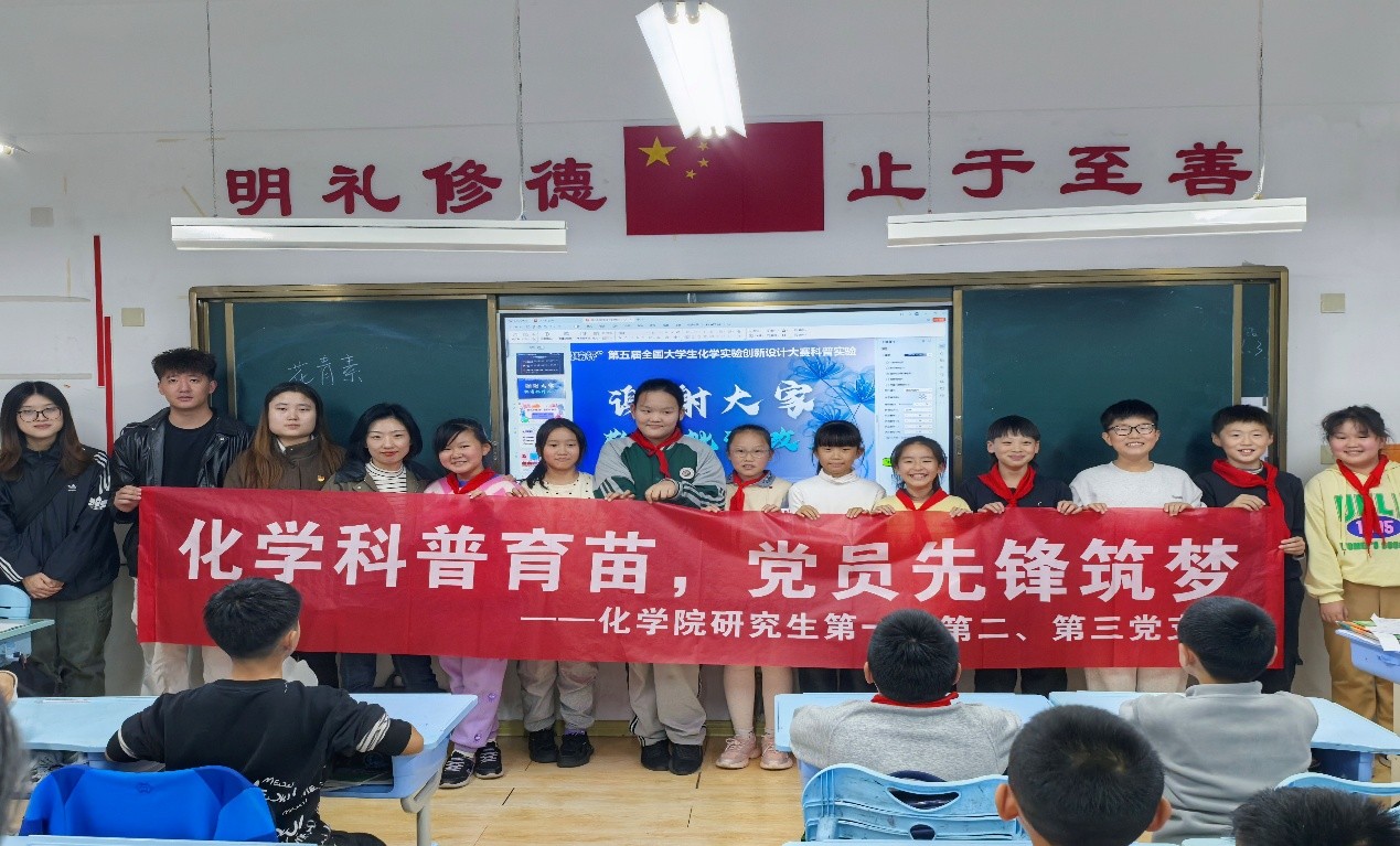 为深入践行服务基层的使命,积极响应“百万大学生进社区”号召,10月29日,yl23455永利集团化学院小分子志愿服务队、化学院研究生党支部、心理健康协会联合市北区洛阳路街道康居社区党委,共同前往青岛明德小学,联合开展一场集化学科普与心理辅导于一体的特色志愿服务活动。此次活动作为研究生第一党支部“社区伙伴帮扶项目”工作的延伸,有力拓展校地合作的广度与深度,是化学院打造“小而实、小而美、小而专”特色志愿服务品牌的真实写照,更是化学院坚持“党团互融,研本共建”充分发挥党员示范引领作用和团员桥梁纽带作用的具体实践。