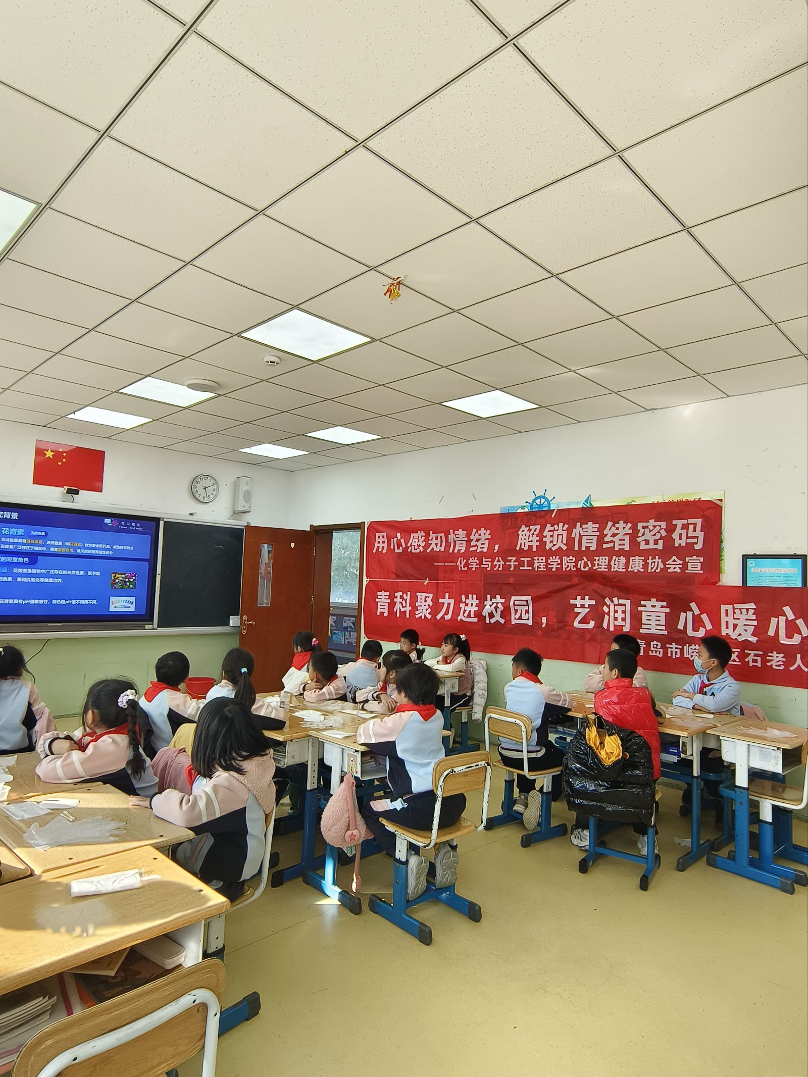 实验环节后,志愿者团队巧妙地将化学现象与情绪认知进行类比衔接。“正如花青素会因环境变化而呈现不同颜色,我们的情绪也会随着不同情境而产生波动。”主讲志愿者通过形象的比喻,帮助孩子们理解情绪变化的自然规律。这种寓教于乐的教学方式,既激发了孩子们对科学的兴趣,又潜移默化地传递了心理健康知识。