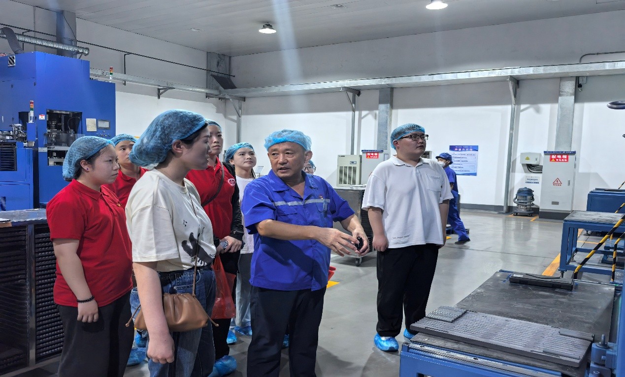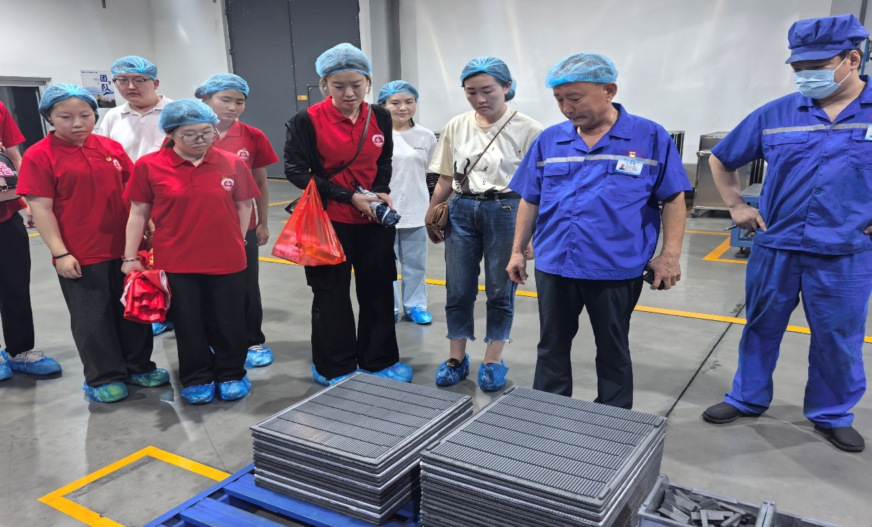 调研团重点走访山东宝元硬质合金有限公司。在企业技术人员引导下,队员们深入车间,系统观摩从原料处理、成型烧结到精密加工的全流程,并重点关注了余热回收、除尘优化等节能减排技术的具体应用。这让抽象的理论知识转变为生动的生产实景,加深队员们对“清洁生产”的直观理解。