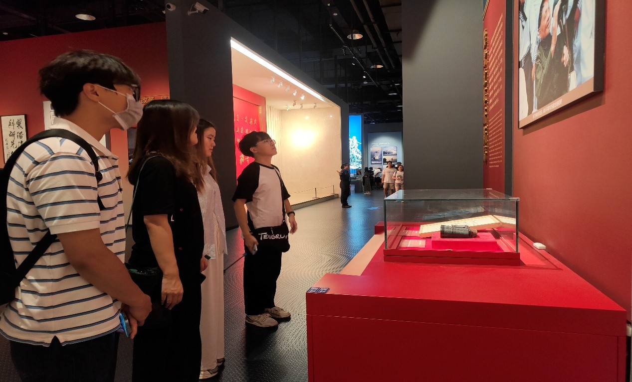在中国人民解放军海军博物馆,实践团参观室内展馆、海上舰艇展区及武器装备展区。从人民海军初创时期的艰难岁月到新时代强军兴军的辉煌成就,队员们通过实物观摩和史料学习,深切体会到国家海防力量的跨越式发展,增强海洋强国意识和爱国情怀。站在新型导弹和舰载武器前,队员们更直观地体会到我国海防力量的迅猛发展与科技自立自强的巨大成就。