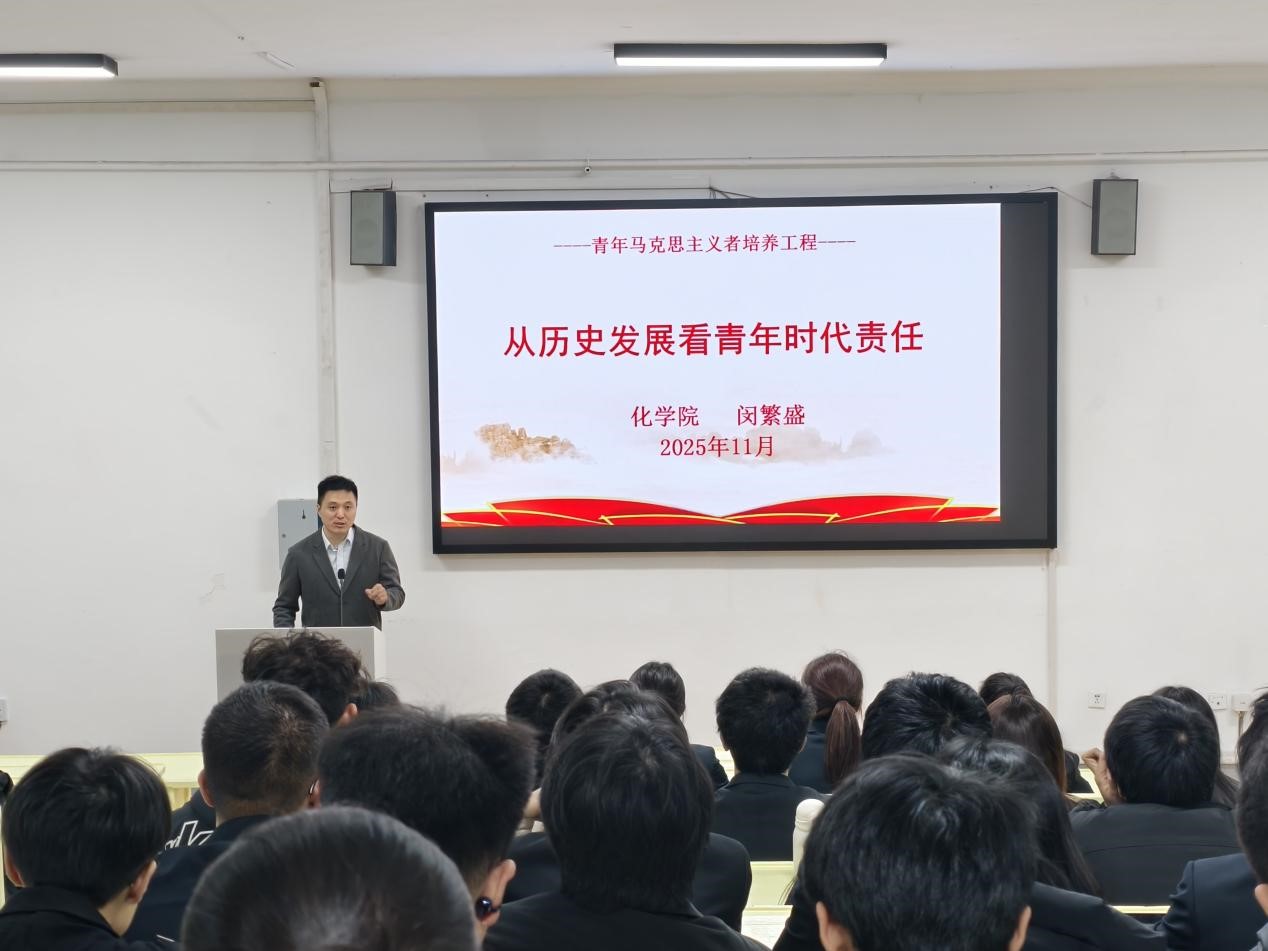 开班仪式结束后,学院团委书记闵繁盛以《从历史发展看青年时代责任》为题发表讲话,通过梳理不同历史时期青年群体的使命担当,深刻阐释了新时代青年的责任与价值,引导学员们从历史中汲取力量,明确自身定位,将个人成长与国家发展同频共振。
