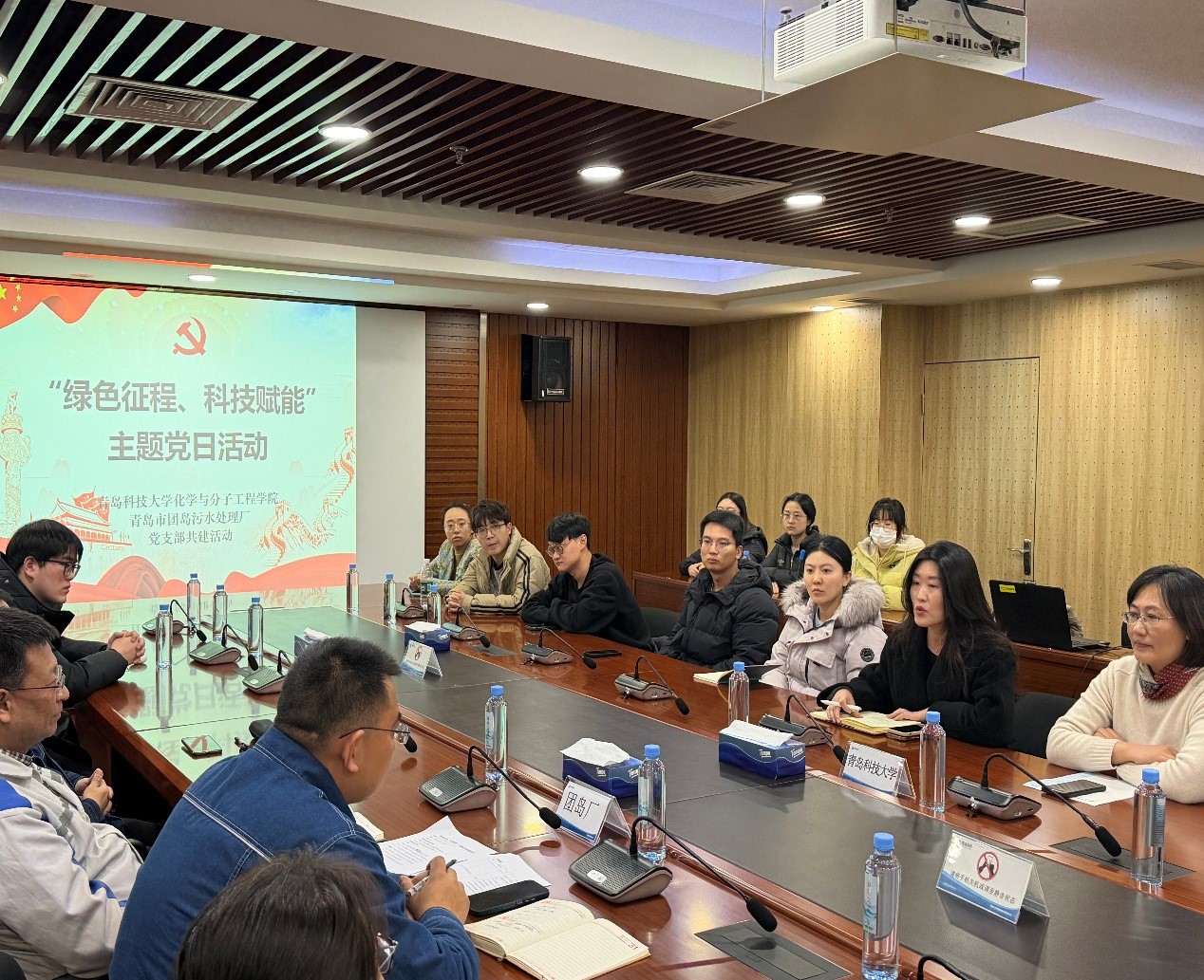 为深入学习贯彻党的二十届四中全会精神,促进永利集团与科技创新深度融合,推动绿色环保事业高质量发展,12月23日下午,化学院研究生党支部与青岛市团岛污水处理厂党支部联合开展“党建赋能科研实践 共促绿色环保发展”主题党日活动。基础化学原理教研室党支部书记林洁华、学生处李炳凯、研究生各党支部书记、本科生各党支部书记以及党员代表等20余人参加活动。青岛市团岛污水处理厂副厂长刘大鹏、陈飞及职工代表参与活动。