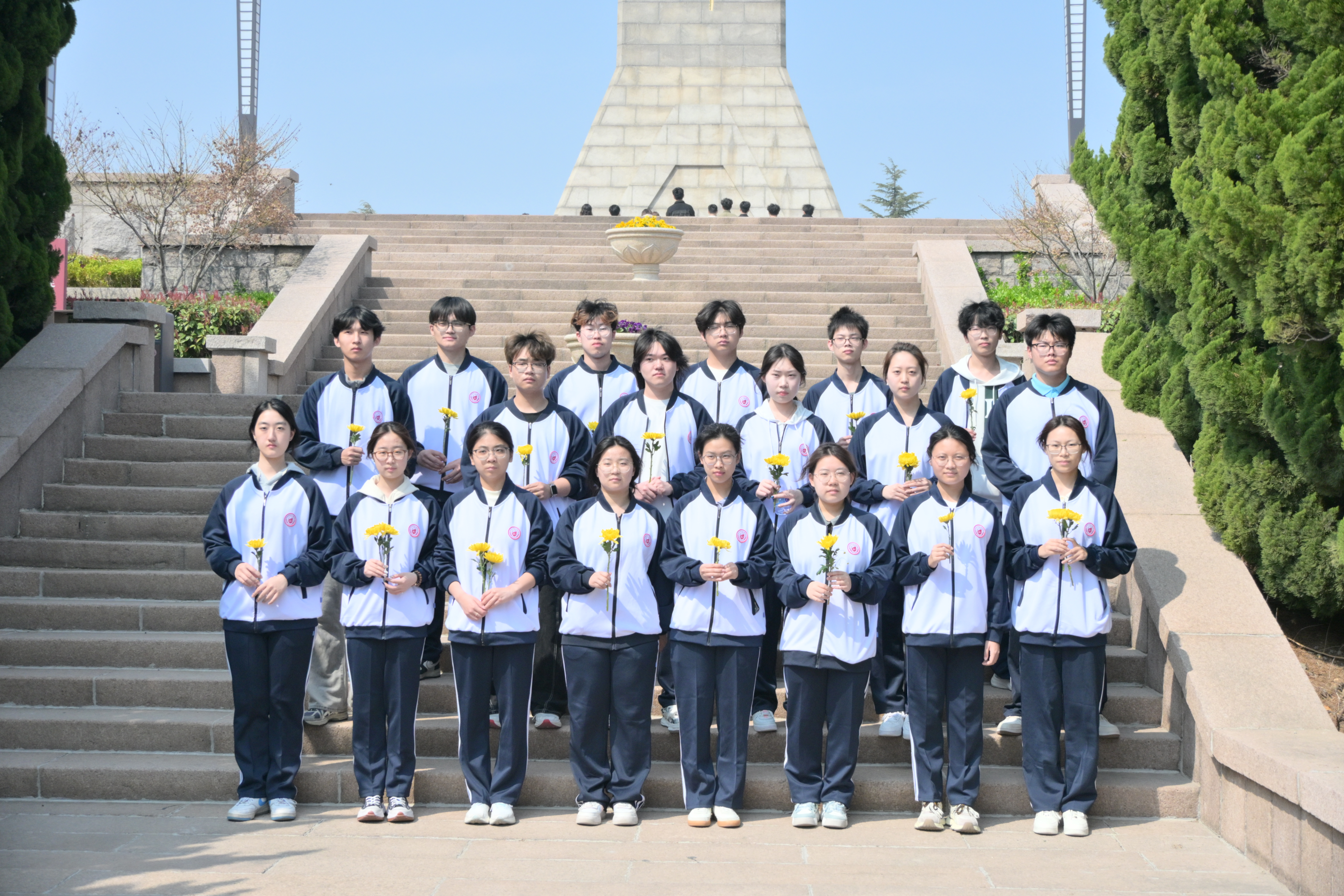 午后,同学们抵达纪念碑前,在五星红旗下整齐列队,众人静立瞻仰。随着国旗冉冉升起,全体肃立默哀。默哀结束后,学生代表缓步上前献花,将花篮轻放碑座,然后大家移步镌刻烈士姓名的英名碑,指尖拂过那些不朽的名字。最后,同学们有序进入纪念馆参观,在文物与史料前凝视,深切感悟英烈精神的厚重与伟大。