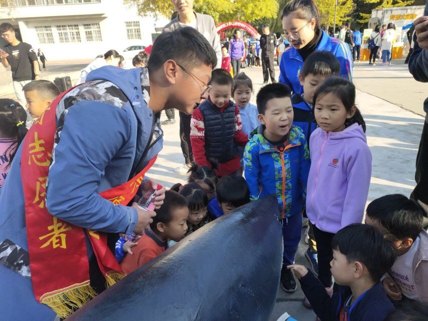 开幕式上,AF街舞社团为现场观众带来了一段精彩的舞蹈,学生会带来科普诗朗诵。开幕式结束后,参观讲解正式开始。活动现场,虎斑宝贝和灰鲸鲨等众多奇特的海洋生物标本、科普仪器吸引了一批批过路学生的注意,他们驻足于平时罕见的标本前,仔细聆听来自水族馆专业讲解员和海之韵科普志愿者们的生动讲解。讲解活动持续了两个多小时,志愿者们不断迎接对海洋知识感兴趣的人,有路过的老师、学生,有专程来团建活动的橡胶185班的同学们,还特别邀请了yl23455永利集团幼儿园的小朋友们。