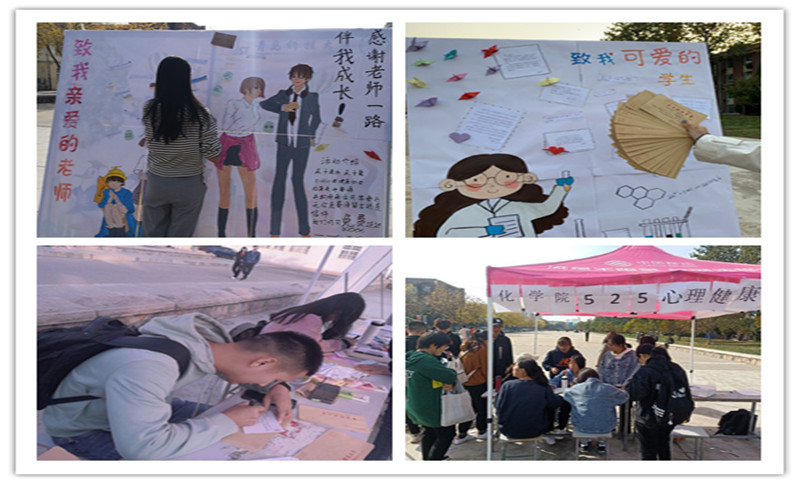 活动前,化学院心理健康协会成员联系各科任课教师,向老师们发出寄语邀请,希望老师们将对学生的要求与期望写下来。在老师们大力支持下,制作了“致我可爱的学生”寄语展板。同时,还搜集了学生们最想跟老师们表达的感谢和敬意,将同学们写给老师的话语整理成“致我亲爱的老师”展板,活动当天吸引大量学生驻足观看。在现场,为参与同学准备了信纸、明信片等,供大家写信表达难忘的师恩,信件、明信片将统一整理并提供义务寄送服务。