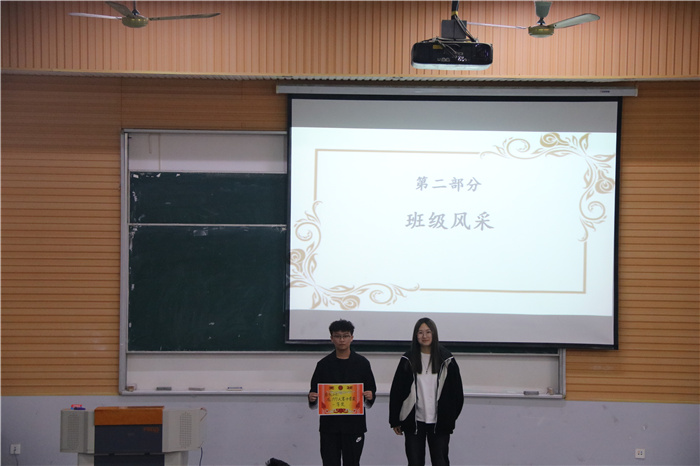 本次比赛共有十四个班级参赛,每班有一位答辩人,答辩人将利用规定的五分钟时间向观众展示本班ppt,并讲解班级特色,讲解结束后评委针对各方面表现进行评分。在这十四个班级展示的ppt中,有同学们精心制作的小视频、班级出游的照片、各班在活动中获奖的合影、以及各种让人忍俊不禁的内部表情包……各班主讲人讲述着自己班内发生的各种趣事,带着评委观众们一起回忆入学来一个个美好的故事。获奖结果出炉后,比赛进入最后阶段,由嘉宾为获奖班级颁奖。本次比赛,应化203班荣获一等奖,化学实验201班、应化实验201班荣获二等奖,化学201班、化学202班、化学203班和应化中美202班荣获三等奖。大家的精彩讲解给评委们都留下了深刻的印象。