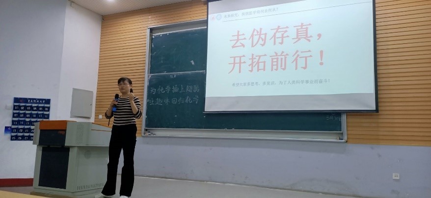 之后由基础化学实验中心戴冬梅老师为大家结合化学带来社会教育职责讲座,希望同学们不仅扮演好受教育者角色,同时扮演好教育者角色,承担社会教育责任,开展好自我教育,树立目标,成人成才。同时要利用自己所学的化学知识来思考分析身边的问题。