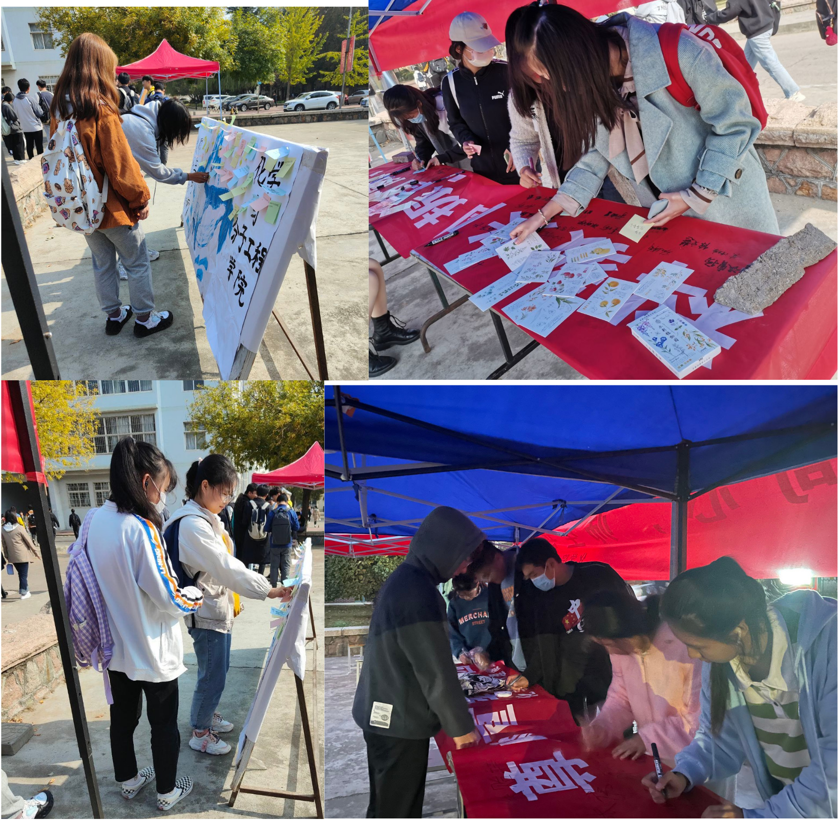 开展线下署名留言活动。化学院心理健康协会在小五四面向全体师生开展了横幅署名和便签留言活动,同学们通过便签留言的形式,写下对老师的祝福与感谢,分享师生之间的感人瞬间,许下自己对未来大学生活的期许。