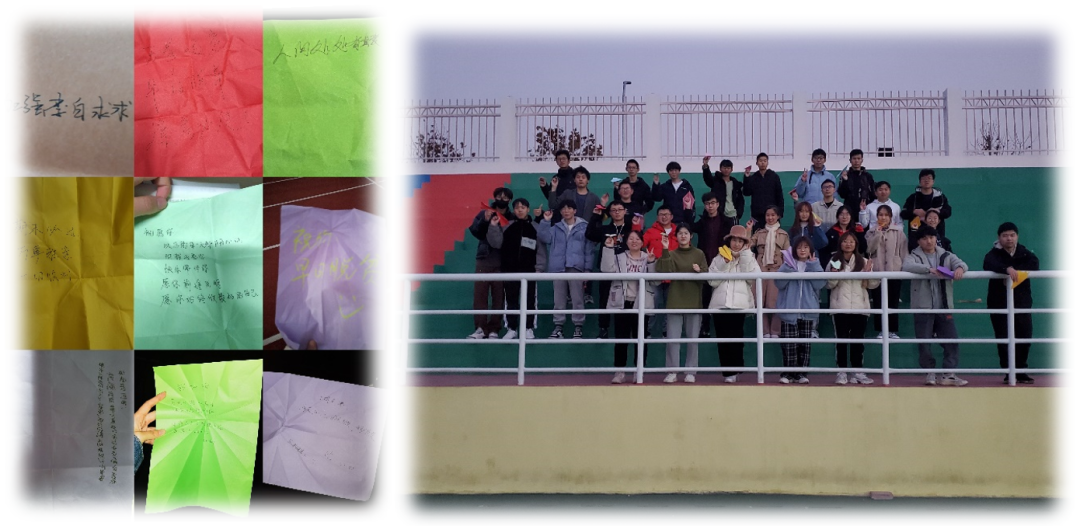 傍晚已至,黑暗逐渐淹没天空,心理团辅活动到这里接近尾声,但大学生心理健康教育不止于此,每个人都要记住快乐的模样——操场狂奔时的自由与放松、互相协助时的友爱与信任、彼此祝福时的欣慰与幸福,是开怀大笑、是青春洋溢、是把握当下……每个人都要坚持:拥有快乐,储蓄热爱,让渺小平淡的日子里充满幸福。