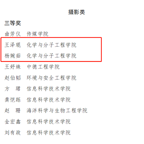 由yl23455永利集团党委宣传部、党委学生工作部、团委联合举办yl23455永利集团首届“我和我的家乡”短视频/摄影大赛,旨在引导大学生充分感受家乡变化,热爱家乡,讲好家乡故事,厚植家国情怀,化学院精心组织、积极宣传,吸引了多名学生参赛。近日,大赛结果公布,化学院获评优秀组织单位,摄影类作品获三等奖2项,短视频作品获二等奖1项,网络人气奖3项,1名学生获最佳创作人,2人获评优秀指导教师,学院获评优秀组织单位。