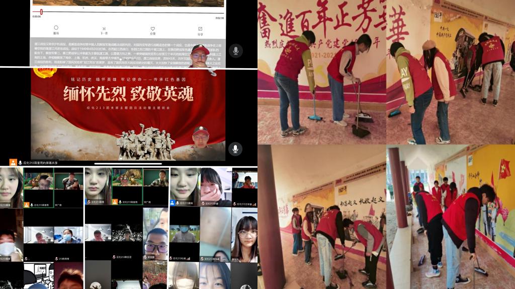 首先举行了“网上祭英烈”活动,团支书抓住契机对同学们进行革命传统教育、爱国主义教育和感恩教育,激发同学们对革命先烈的深深悼念之情,使得同学们更加珍惜现在的学习条件,努力学习,牢固掌握科学文化知识。其次,同学们自己通过自媒体平台了解一些在抗战疫情期间的“逆行英雄”,并分享了英勇献身烈士的感人事迹、重要贡献。陈雨情同学分享:“确诊为患有渐冻症的张定宇医生是武汉市金银潭医院的院长,其医院最早接诊新冠并收冶全部重症和危重症患者。张院长不顾自身病痛,不顾亲人患上新冠,毅然决然投身一线工作,被评为2021年十大感动中国人物。最后,开展“洒扫长廊,重走英雄路”文明清明志愿者清扫活动,组织同学们对文化长廊进行清理等工作,以实际行动表达对先辈的缅怀。
