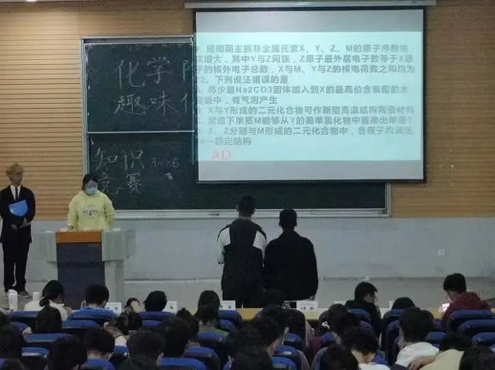 本次知识竞赛涉及化学生活常识以及专业性知识。既考察和提高了选手们的专业素质,也在一定程度上向同学们普及了更广阔的专业知识,同时也为营造浓郁的校园学习氛围和加强学风建设发挥了积极作用。本次知识竞赛为大一的同学提供了展示风采的舞台,增进了同学们的友谊。