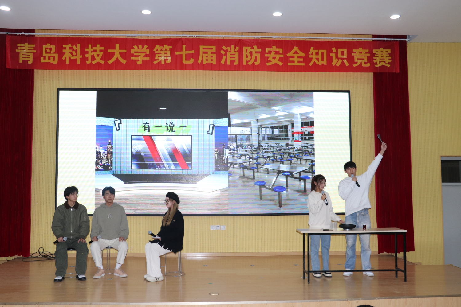 在主题演讲环节,陈雯雯以“火灾之固,岂非人事”为主题,用一个个真实的案例唤醒我们的警醒,阐述消防安全的重要性,提醒大家时刻把消防安全作为学习、生活的第一准则。在消防知识答题环节,李欣然紧盯屏幕,一题接一题迅速又准确的回答了自己抽中的选题。在情景再现环节中,由我院学子刘可旭等人表演的原创情景剧以“有一说一”节目为依托,通过采访消防员,讲述大学消防安全隐患。