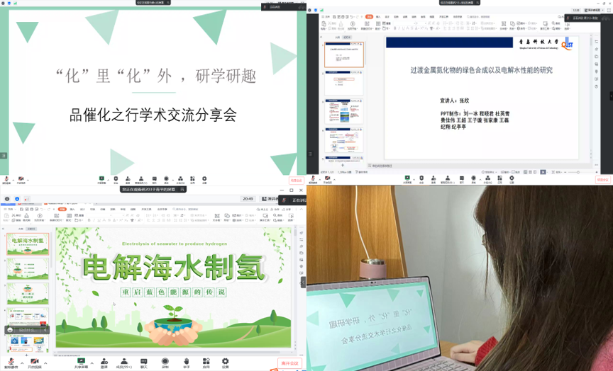 2023年2月9日,化学院开展“化里化外,研学研趣”——品催化之行学术分享会,化学院研究生参与此次活动。期间,研究生三年级几位同学分享读研期间的科研方法和研究生生活的心得体会,使同学们了解学术前沿动态,激发创新潜能。