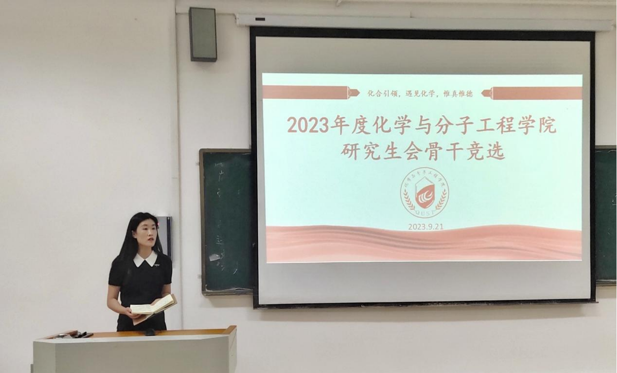 2023年9月21日8:00,化学院研究生于一政243开展研究生会骨干竞选会议,化学院全体研究生会成员及化学院研究生辅导员程丽老师参与此次活动,张家康担任主持人。