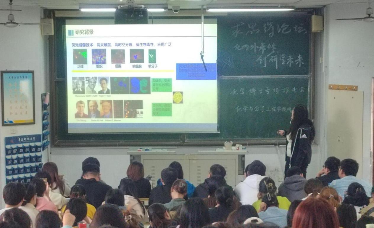 报告会开始前,人潮就涌入教室,在演讲嘉宾还未登台之际,会场座位已座无虚席。此次报告会的现场爆满,展示出学生对科研的浓厚兴趣以及对博士学者的崇敬之情。报告会的成功举办也反映出化学院在促进学术研究交流方面的卓越努力。