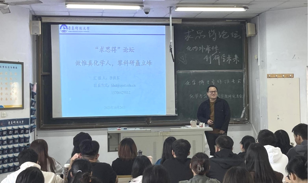 2023年10月24日下午1:30,化学院研究生于第一教学楼202室开展“求思得”论坛:惟真惟德大讲堂——“化内外兼修,创研学未来”化学博士专场报告会。李洪东、曾祥花和胡博博士应邀出席交流活动。报告会由刘凯昱主持,化学院研究生参加本次报告会。