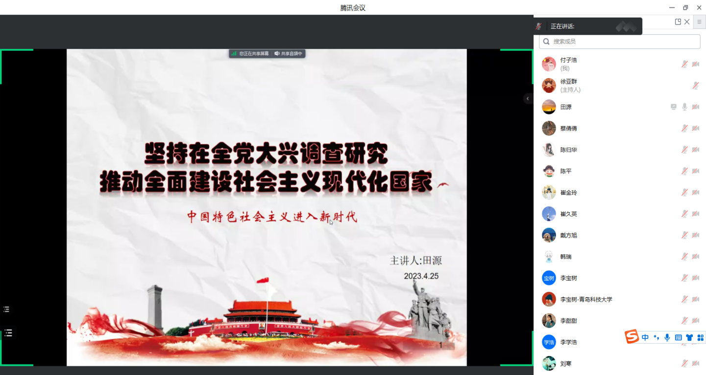 为深入学习贯彻习近平新时代中国特色社会主义思想和党的二十大精神。化学院研究生第一党支部于2023年4月25日线上开展了化学院研究生第一党支部关于在全党大兴调研之风的工作方案党课学习。