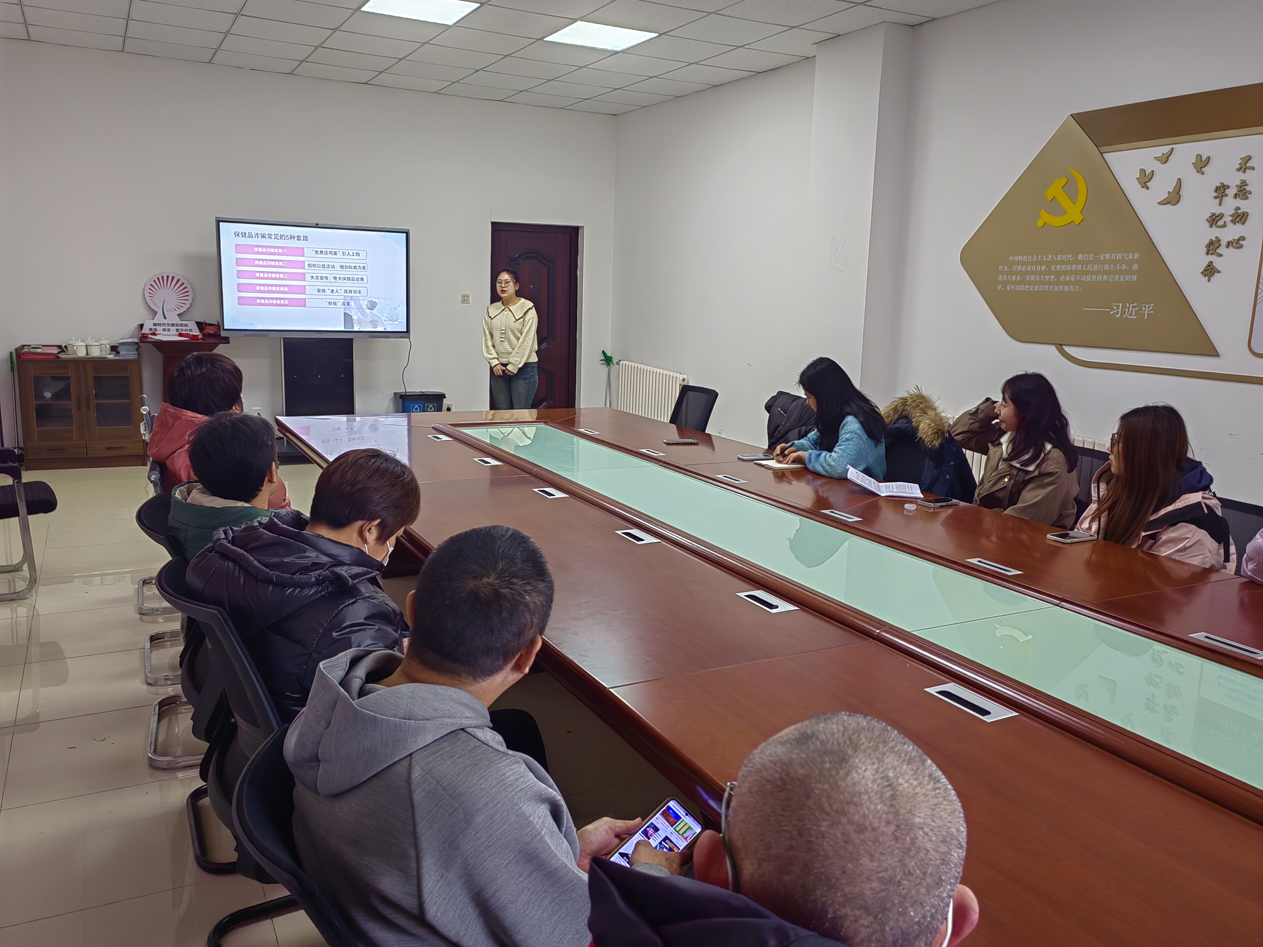 本次老年人防诈骗主题宣讲首先由学院研究生第三党支部书记高诗文围绕“电信诈骗”主题,为居民讲解分析了电信诈骗的特点、种类、危害性及防范技巧,引导居民做到“不听、不信、不转账、多核实”。提醒居民做好自身证件信息、手机号码、银行卡等私人信息的保护工作,树立防骗意识。之后,宣传团成员孙银静围绕“保健品诈骗”主题,揭秘了保健品骗局,提醒广大居民一定警惕“养生”骗局,正确认识保健品,注意保健品与药品的区别,任何保健品都不能治疗疾病,对自己不了解的所谓“高科技”产品,不要道听途说、轻易购买。
