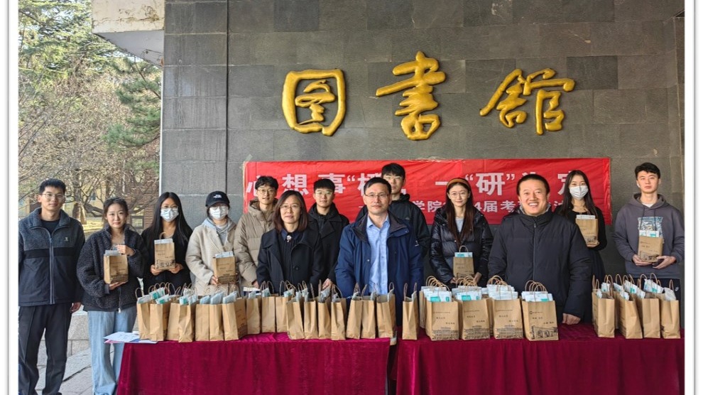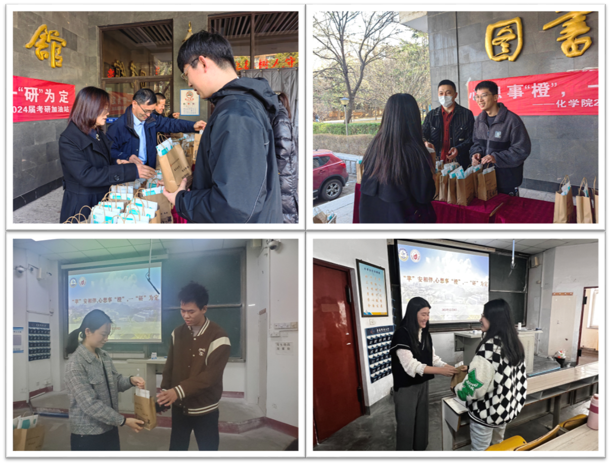 学院分别在图书馆、一教、二教设立“考研加油站”,为学院考研学子发放考研加油大礼包。“平安果”、“考研橙”、口罩以及助力书签承载着学院师生的期愿,寄托着学院对考研学子们的亲切关怀和祝福。